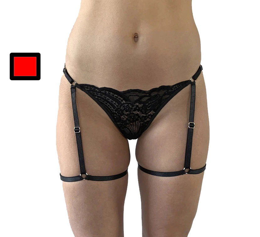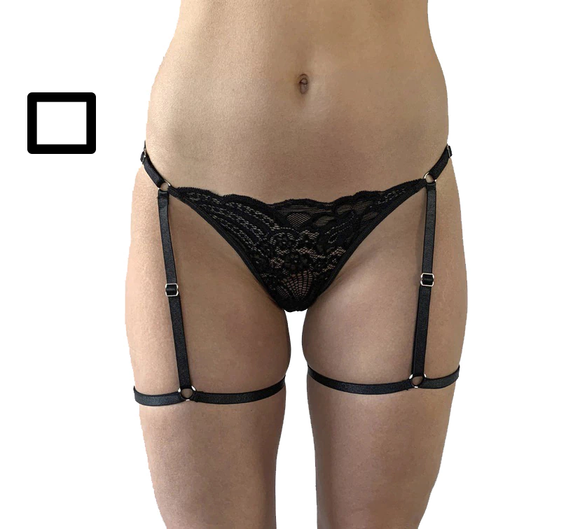 ¡Añadí sensualidad y actitud a tus momentos especiales con este exclusivo Arnés de Cintura y Piernas con Hilo Dental Regulable!