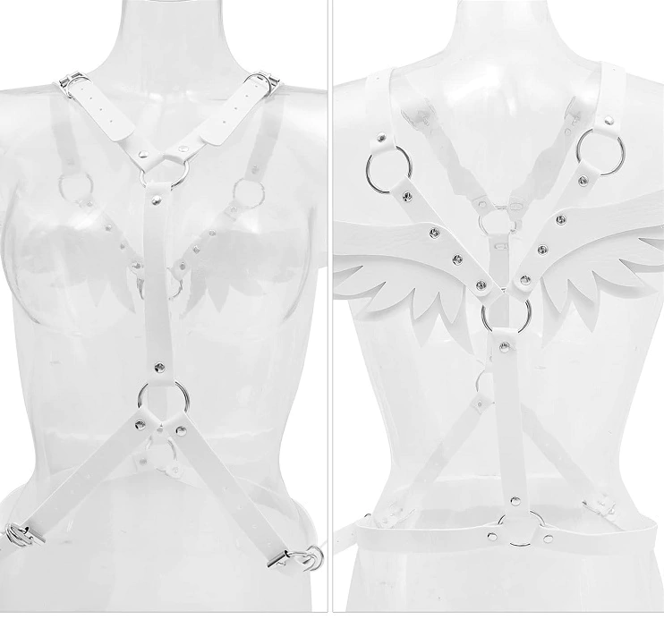 Tirantes de alas de ángel de piel sintética con arnés ajustable en el pecho.