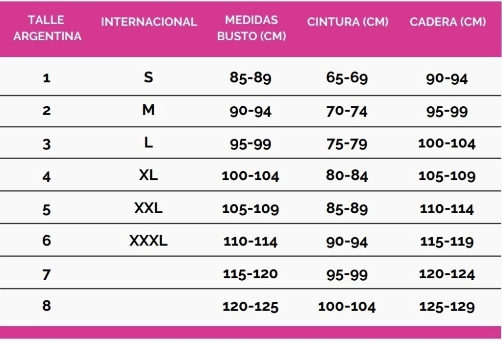• Talles 1/2/3/4 (Ver tabla de talles)